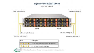 | Drive Bays | 3 Hot-swap 3.5” NVMe/SAS drive bays + 3 Hot-swap 3.5” SAS drive bays per node |
